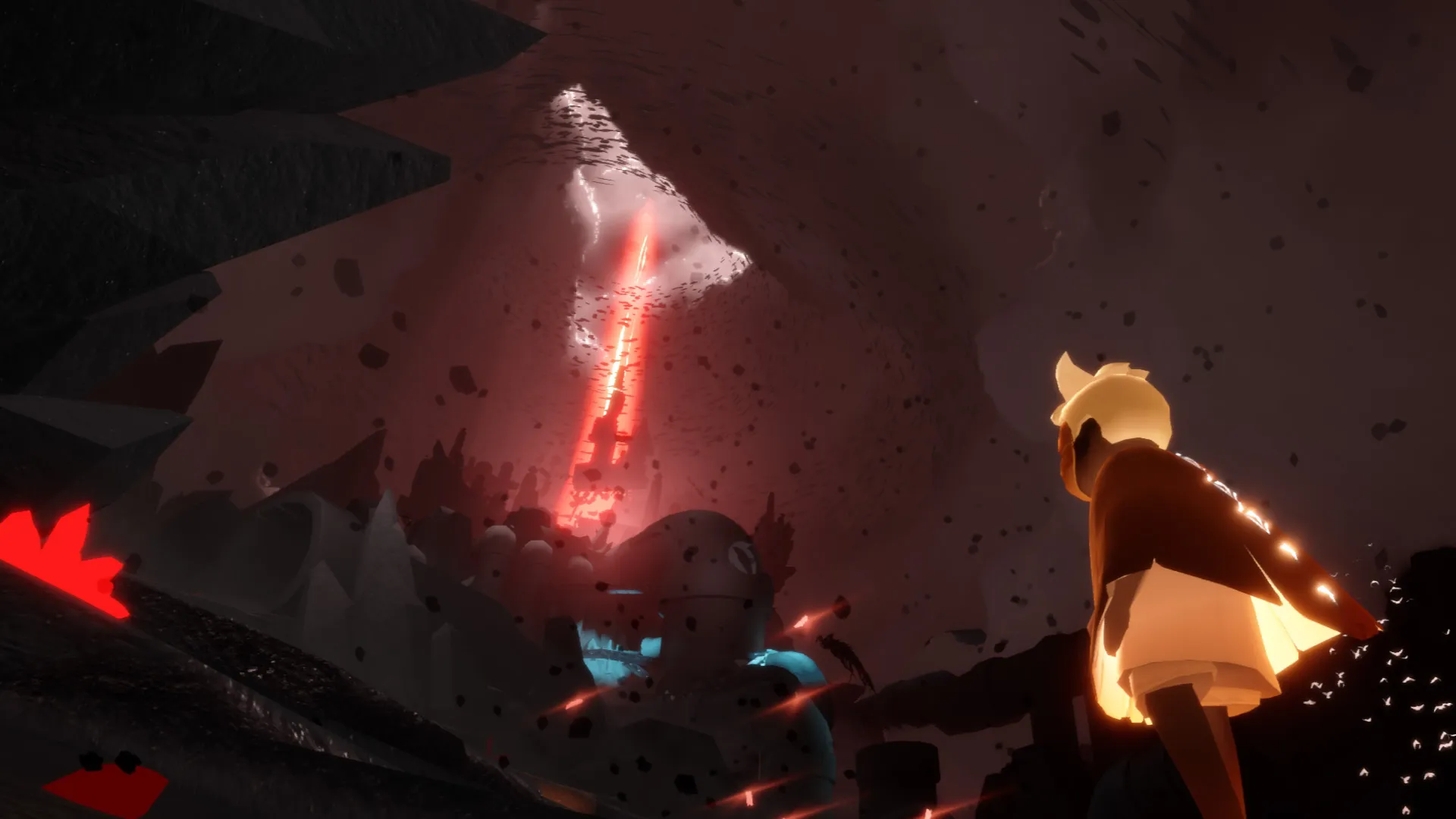 The environment feels unstable — almost as if the world itself is breaking apart. And for the first time, the journey no longer feels safe.
